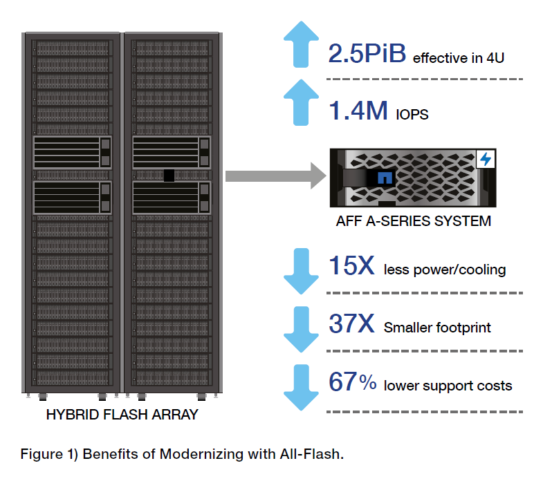 IT departments are striving to make budgets go further and to allow IT staff to focus on new value-added projects rather than on day-to-day IT management. AFF systems simplifies IT operations therefore reduces data center cost. The newest entry-level AFF A250 systems in particular delivers best-inclass performance and efficiency at an entry price point to mid-size business customers allowing for more consolidation of workloads eliminating silos.