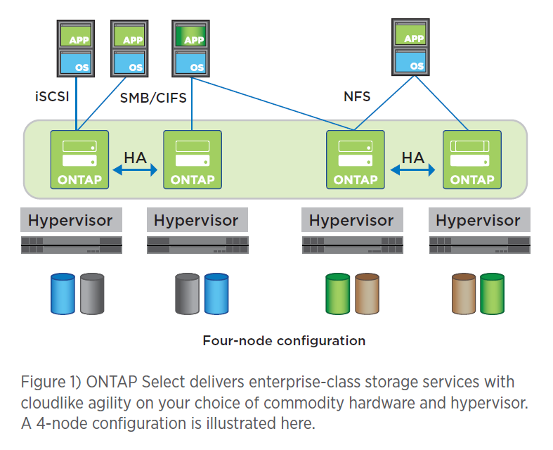 NetApp ONTAP Select offers robust enterprise storage services that are easily deployed on your choice of commodity hardware from the comfort of your own data center. It combines the best of the cloud, in terms of agility and granular capacity scaling, with the flexibility, resilience, and locality of on-premises storage.